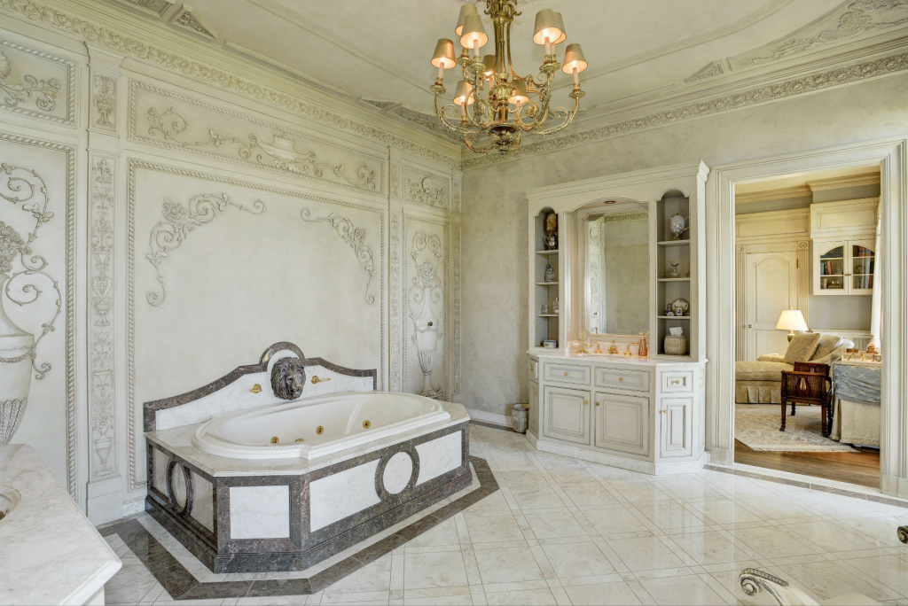 The residence was designed by renowned architect Douglas H. Thomas, whose firm designed Baltimore’s Belvedere Hotel and the Maryland Club. Today, the home for sale is situated on a peninsula bordered by Meredith Creek and Whitehall Bay. With approximately 26 acres, it has over 10,000 square feet of living space, with five bedrooms, six baths, pool house and in-law suite. Bought by Liz and Tom Munz in 1993, the mansion has been thoughtfully modernized by Bohl Architects. Its European-style interior was designed by Arlene Critzos of the Annapolis-based Interior Concepts, with some rooms custom painted by Warnock Studios, recognized for their work at the White House.