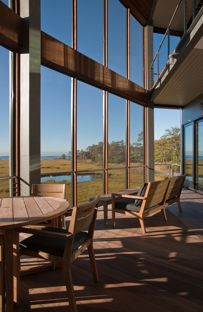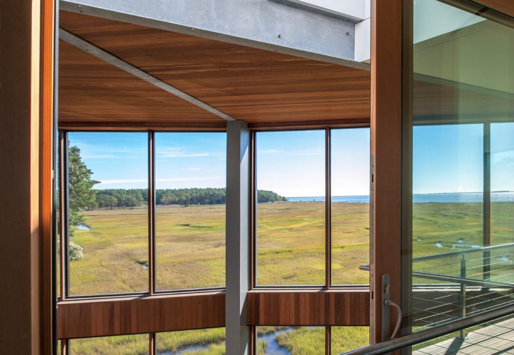 Once inside, walls of windows and glass doors draw the eye directly to the serene vista of the marsh. “The view changes all the time,” said McDaniel.