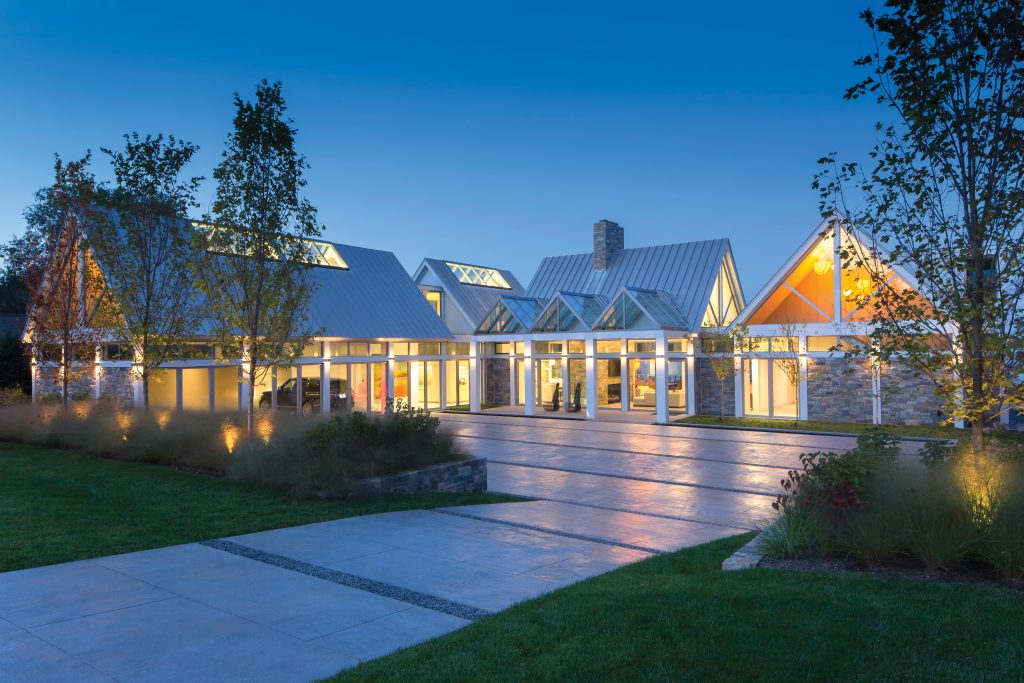 For instance, for this project she began with the form of a simple Chesapeake Bay cottage and then proceeded to add and subtract. “Walls and even ceilings were ‘subtracted’ and replaced with pure, unobstructed glass,” she notes. She explains that traditional cottages were often expanded vertically with simple shed dormers and living spaces added on over time. With this “additive” principle in mind, her team expanded the cottage form and organized living, entertaining and sleeping spaces around the vista of the water.